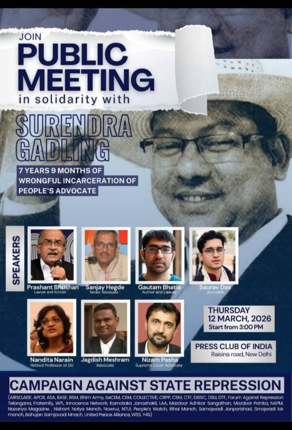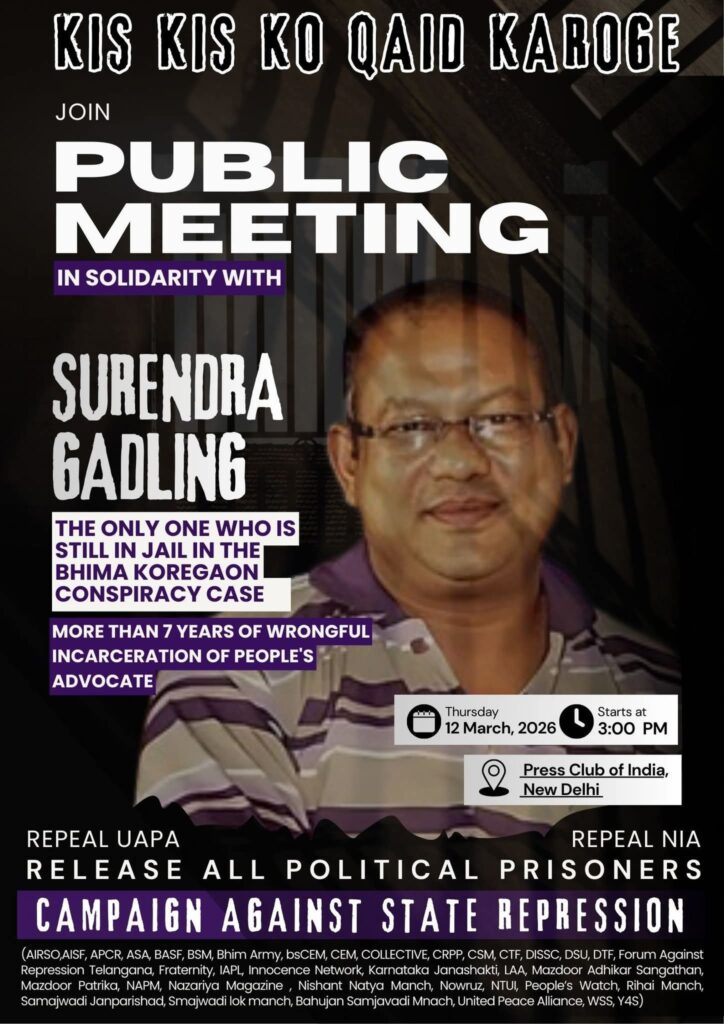 Public Meeting in Solidarity with People’s Advocate Surendra Gadling (March 12)
